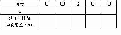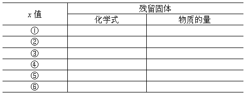(2)若石英与混合物的物质的量之比为x(0<x<1),问x为何值时,残留固体为何种物质?写出残留固体物质的量与x值之间的关系,将结果填入下表(不一定填满)
