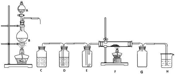 (12分)下图所示为实验制取纯净干燥的Cl2,并进行检验Cl2性质的实验装置。其中E瓶中放有干燥红色布条,F中为铜网,F右端出气管口附有脱脂棉。![]()