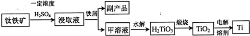 钛铁矿常用于冶炼金属钛,其主要成分为FeTiO3,含有FeO、Fe2O3等杂质.