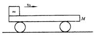 如图所示,质量m=20kg的物体以水平速度v0=5m/s滑上静止在水平地面的平板小车的左端。小车质量M=80kg,物体在小车上滑行一段距离后相对于小车静止。已知物体与平板间的动摩擦因数μ=0.8,小车与地面间的摩擦可忽略不计,g取10m/s2,求:![]()