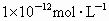 D.1×10-12mol·L-1