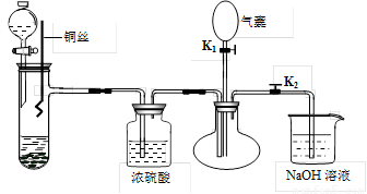 ⑶充分反应后,打开开关K1,通过气囊鼓入空气,可以观察到烧瓶中 ,证明稀硝酸与铜反应的气体产物是NO。