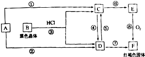 (1)若D为金属单质,且以上反应均为氧化还原反应,请写出B→C反应的离子方程式: