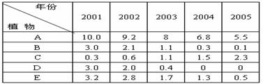 (1)在所调查的A~E五种植物中,你认为入侵物种最可能是 ,请在坐标图中绘出该物种的种群密度变化曲线。