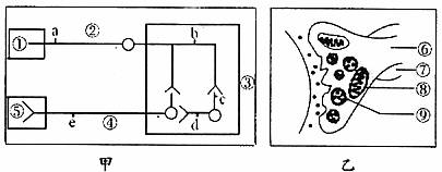 (1)甲图中f表示的结构是 ,乙图是甲图中 (填字母)的亚显微结构放大模式图,乙图中的B是下一个神经元的 。