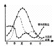 右图表示的是硅藻和一些非生物因子季节性的变化,数据来自北温带海洋的上层。以下哪项对图的解释是正确的 ![]()