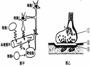 (3)若图甲细胞3受到刺激产生兴奋,兴奋部位膜外电位的变化是________________;兴奋在细胞3和细胞2间传递的结构如图乙所示,图乙中结构③的名称是________________,兴奋通过图乙的传递过程中,信号的变化情况是__________,兴奋传递方向的特点是________________。