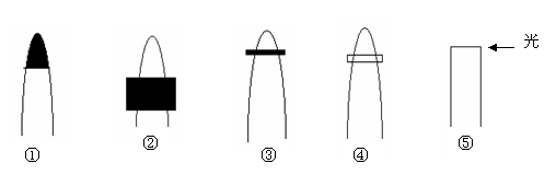 对燕麦胚芽鞘进行如下图所示的处理:①的胚芽鞘尖端套上不透光的锡箔小帽;②将尖端下部用锡箔遮住;③在尖端横向插入锡箔;④在尖端横向插入琼脂片;⑤切去胚芽鞘尖端。下列选项中错误的是