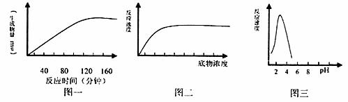 (3)图一表示人体某种酶作用于一定量的适宜物质(底物),温度、pH保持在最适值,生成物量与反应时间的关系。在140分钟后,曲线变成水平,这是因为 。若其他条件不变,将该酶的浓度增加一倍,请画出生成物量变化的曲线(包括原图一起画出)。