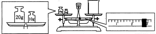 (2)某同学欲称量NaOH的质量,他先用托盘天平称量烧杯的质量,天平平衡后的状态如图.烧杯的实际质量为 g,要完成本实验该同学应称出 g NaOH。![]()