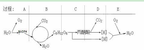下图简要表示了光合作用和呼吸作用中的五个生理过程(分别用过程:A—E表示),请回答: