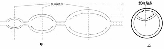下面甲、乙两图分别表示真核生物DNA分子与原核生物DNA分子复制过程示意图,下列有关说法错误的是( )