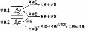 (2)经过处理②形成的有种子豆荚,其豆荚的颜色、基因型分别是