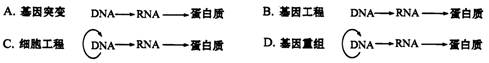| C.细胞工程,DNA→RNA→蛋白质 | D.基因重组,DNA→RNA→蛋白质 |
