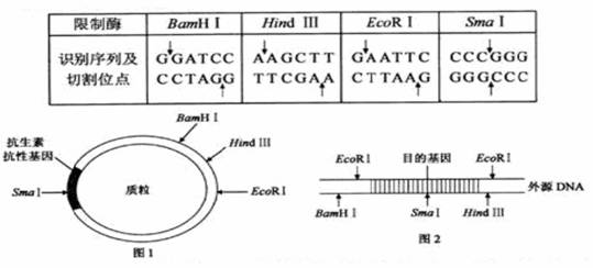 查看习题详情和答案>>下表中列出了几种限制酶识别序列及其切割位点,图l、图2中箭头表示相关限制酶的酶切位点。请回答下列问题: