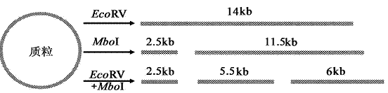 (8)用限制酶EcoRV、Mbol单独或联合切割同一种质粒,得到的DNA片段长度如下图(1 kb 即1000个碱基对),请在答题卡的指定位置画出质粒上EcoRV、Mbol的切割位点。