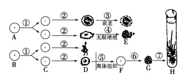 (2)F→G→H过程叫做________________,其中⑦过程中细胞的全能性变 。