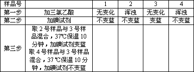 | 第一步 | 加三氯乙酸 | 无变化 | 浑浊 | 无变化 | 浑浊 |