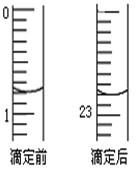 下图是用0.1000 mol/L的盐酸滴定某未知浓度的NaOH溶液的示意图和某次滴定前、后的盛放盐酸滴定管中液面的位置。请回答: