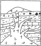 下图中a、b、c、d表示成因不同的岩石,读图回答下列各题。