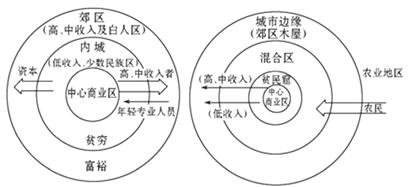 D.低收入者是由城市中心商业区迁往城市边缘的郊区