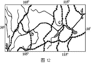 (2)图中c、d两地之间的南北铁路干线是 线 ;简述图中b、c两城市在河流交通运输中的共同区位特点。