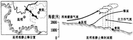 图4是昆明准静止锋示意图。读图,完成第8题。