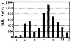 右图是我国某河干流一个水文站测得的全年各月流量统计图,据此回答第8题。