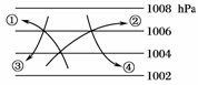 下图为等压线分布示意图,其中表示南半球近地面风向的是