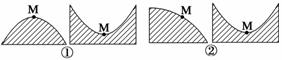 (2)右面两组图分别是沿两个相互垂直的方向画的地形剖面图。分析M点在①②两图中代表的地形类型:① ,② 。(4分)