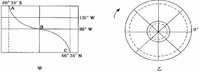 摘要:28.下图甲中曲线ABC为昏线.读图回答下列问题. (1)此时为 月 日.地球公转速度较 (2)此时北京时间为 时.海口人的影子朝向 方向. (3)此时地球上新的一天和旧的一天的分界线是 和 . (4)乙图中虚线小圆为极圈.在乙图中画出晨昏线.并标出夜半球.