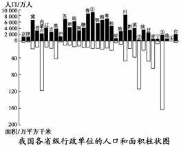 读“我国各省级行政单位的人口和面积柱状图”,回答3~4题。
