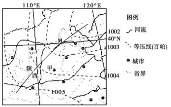 (1)图中M为锋线,简述此时甲地的天气状况。(4分)