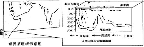 读“世界某区域示意图及印度洋沿赤道纵剖面图”,回答题。
