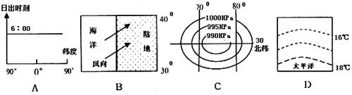 A.地中海地区盛行西南风 B.全球昼夜等长