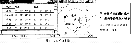 (1)GIS具有强大的查询功能,根据图1显示的查询半径,图中以北京为查询中心的地图