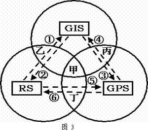 (4)图3中各个圆的重叠部分分别代表RS、GPS、GIS不同组合的综合应用,其中重叠部分乙代表GIS与RS技术的组合,丙代表_____________技术的组合。在图3所示的各个综合应用中任选一种组合,并写出应用实例:_____________________________________________。