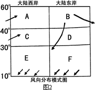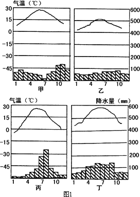 (2)根据图1中甲、丁两种气候类型的分布规律,在图2中与其相对应的位置分别是________、_____ ___。(填写代表字母)