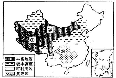 (1)图中①地区年太阳辐射能丰富的主要原因是什么?为什么该地区太阳辐射能丰富,而其气温不高?(6分)