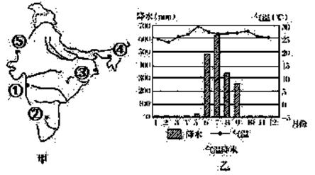 (3)该国最热的月份,降水最多的月份分别是几月,请结合图乙信息分别分析其原因。(6分)