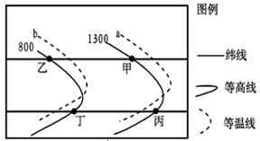 C.甲地较丙地纬度低,气温 较高 D.乙地较丁地海拔低,气温较高