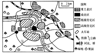 查看习题详情和答案>>读“我国东部地区某城市功能分区示意图”(图 12 ) ,回答25~26题。