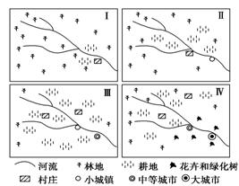 ①图中河流的丰水期流量增大,枯水期流量减小 ②图中城市人口增加,乡村人口减少 ③图示区域出现了城市化现象 ④图中河流夏季流量减小,冬季流量增大