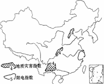 查看习题详情和答案>>图中为“中央气象台发布的某日我国地质灾害指数和限电指数分布示意图”,读图完成(1)~(3)题。