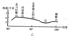 雪线是永久冰雪带的下界,受气温和降水共同影响。下图甲表示我国沿87oE山地雪线的变化,图乙表示我国沿29oN山地雪线的变化。读图,回答1-2题。