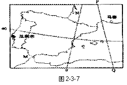 查看习题详情和答案>>读“世界局部地区图”,当图中PQ线为昏线且与极圈相切时,回答1~2题。