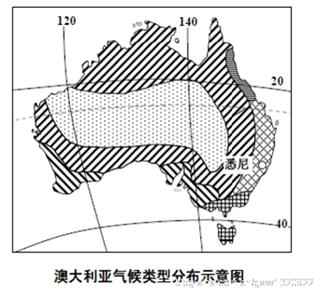 读澳大利亚气候类型分布示意图。回答问题。(14分)