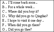 阅读下面对话,从方框内7个选项中选择5个恰当的句子完成此对话,并将其番号填入题前括号内。