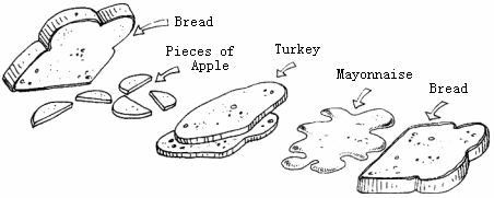 看图写一段话,介绍如何制作“三明治”(sandwich).