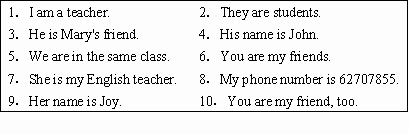 仔细观察下面方框里的句子,你会发现动词“be”有三种不同形式,分别是“is,am,are”,请找出“be”动词这三种不同形式之前的词,也就是主语(其中he,she是单数第三人称,I是单数第一人称,还有其他人称以后再给大家介绍),归纳填写到下面的表格里。